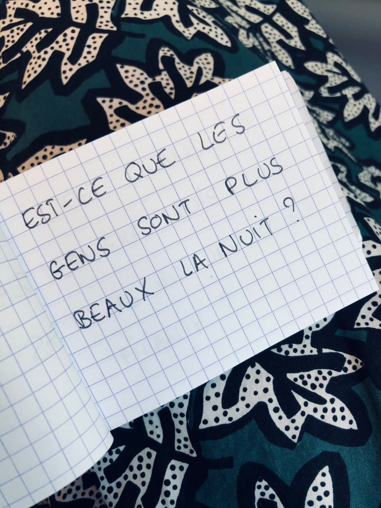 En marge de la création de l’écriture d’un texte autour de la nuit comme espace d’émancipation, Emmanuelle Jacquemard a été sélectionnée par le Programme Transat des Ateliers Médicis pour mener, en juillet 2022, une résidence de création/transmission au centre social et culturel AMIQ (La Seyne-sur-Mer). Au programme : balades nocturnes et partage d’imaginaire sur le thème de la nuit !